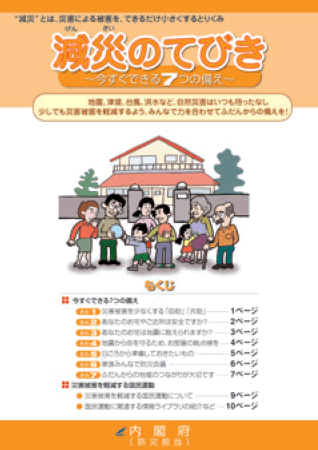 地震,津波,台風,洪水など,待ったなしでやってくる自然災害に,地域みんなの力を合わせて立ちむかうために,私たちはどのような「備え」をすればよいのか,一緒に考え,行動してみましょう。「7つの備え」は,大掛かりな準備や多額のお金を必要とするものではありません。日ごろのちょっとした工夫・備え(気づき)があれば,災害被害を軽減することができるのです。「7つの備え」のポイントは以下のとおりです。