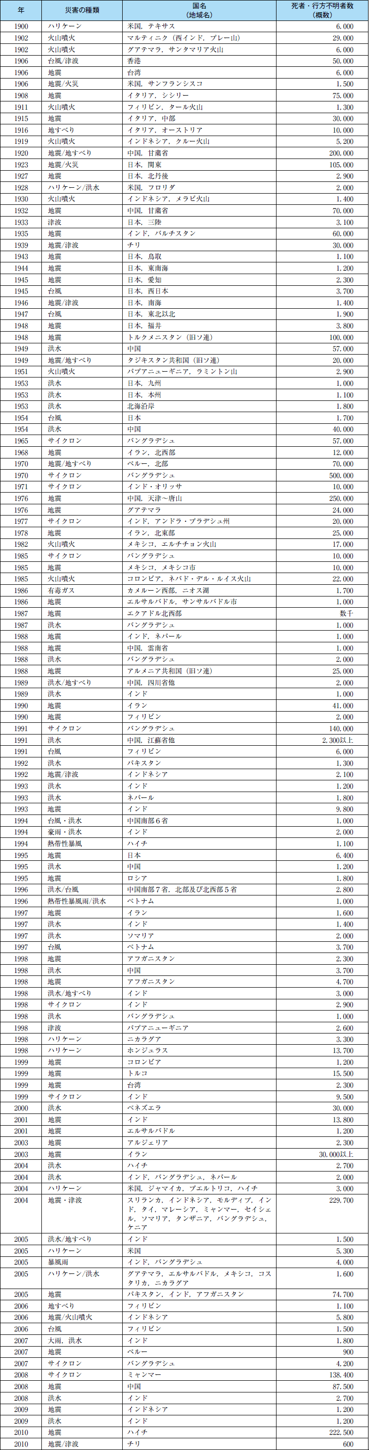 附属資料30 1900年以降の主な自然災害の状況