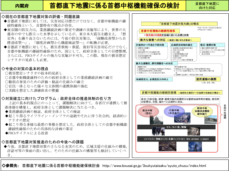 > 首都直下地震に係る首都中枢機能確保の検討
