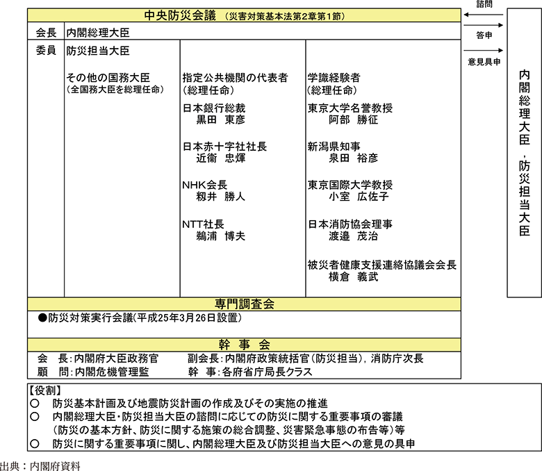 > 平成28年版 防災白書|附属資料32 中央防災会議の組織について
