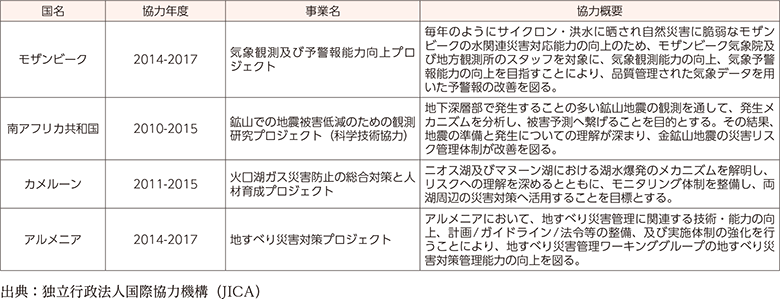 内閣府ホーム > 内閣府の政策 > 防災情報のページ > 会議・検討会 > 防災白書 > 平成28年版 防災白書 > 平成28年版 防災白書|附属資料61 技術協力プロジェクト事業における防災関係の事例(2015年度)