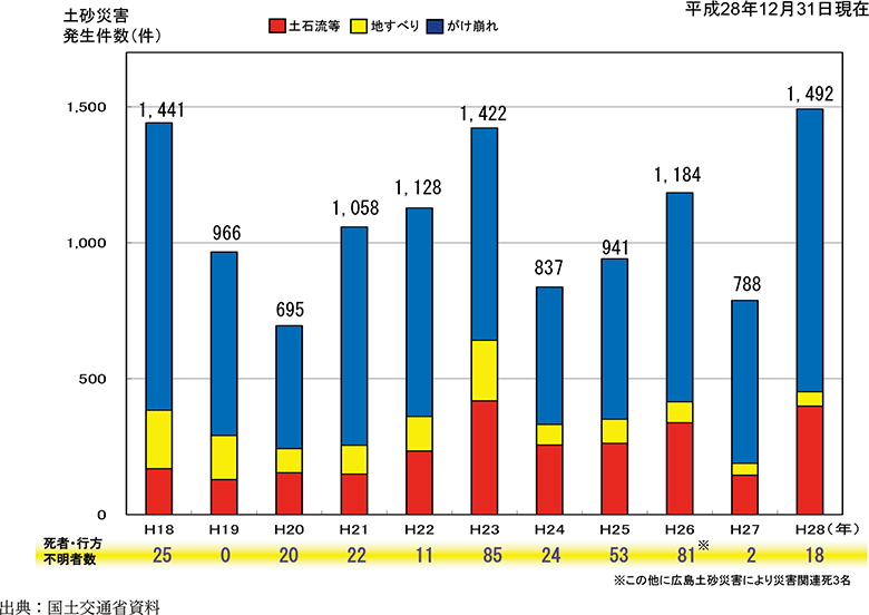 平成29年版 防災白書|附属資料21 土砂災害の発生状況の推移