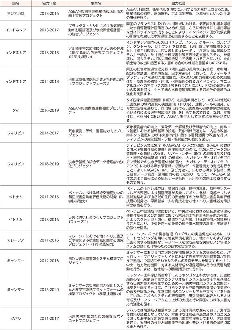 内閣府ホーム > 内閣府の政策 > 防災情報のページ > 会議・検討会 > 防災白書 > 平成29年版 防災白書 > 平成29年版 防災白書|附属資料60 技術協力プロジェクト事業における防災関係の事例(2016年度)