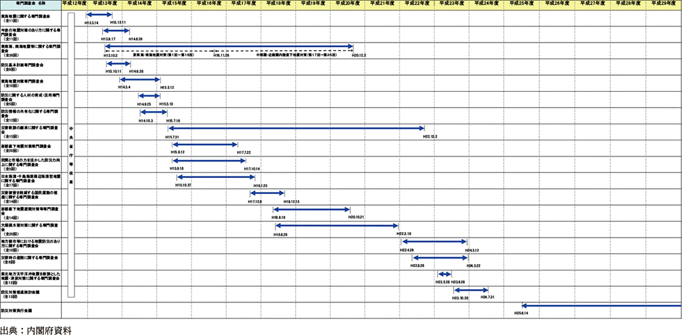 内閣府ホーム > 内閣府の政策 > 防災情報のページ > 会議・検討会 > 防災白書 > 平成30年版 防災白書 > 平成30年版 防災白書|附属資料33 中央防災会議専門調査会の設置状況