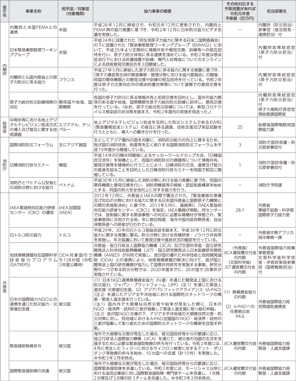 内閣府ホーム > 内閣府の政策 > 防災情報のページ > 会議・検討会 > 防災白書 > 令和3年版 防災白書 > 令和3年版 防災白書|附属資料54 各府省庁における国際協力に関する事業一覧