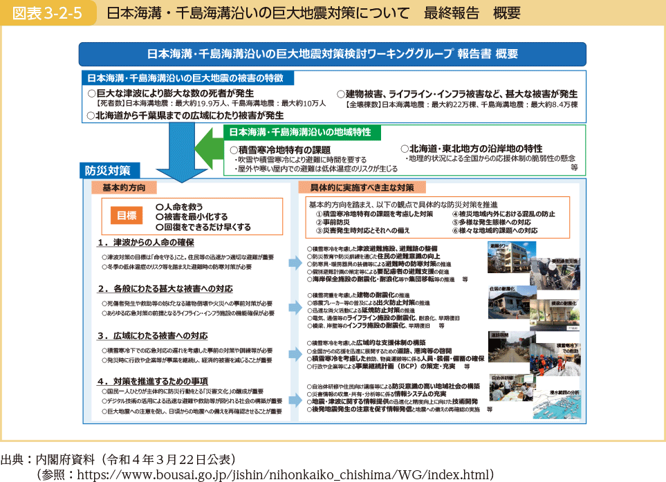 内閣府ホーム > 内閣府の政策 > 防災情報のページ > 会議・検討会 > 防災白書 > 令和4年版 防災白書 > 令和4年版 防災白書|図表3-2-5 日本海溝・千島海溝沿いの巨大地震対策について 最終報告 概要