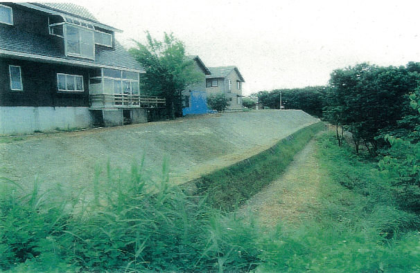 住宅宅地の盛土斜面や擁壁などの人工斜面については、災害関連地域防災がけ崩れ対策事業(略称「地域がけ」)の特例措置により、崩壊対策工事を実施した。工事は県の補助を受けて市が実施したもので、写真はジオテキスイタイル工法を用いた補強盛土工事を行った所である。