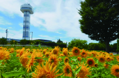 木曽三川公園センター「水と緑の館・展望タワー」とひまわり。
