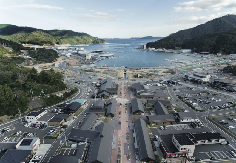 女川町は震災から半年後に復興計画を策定、「減災」を基本理念に公民連携で「新しい港町づくり」を始めました。山と海に挟まれ平地が少ない町を津波から守るために、海岸沿いの低地をかさ上げし、高台に住宅地を造成しました。さらに、女川駅前の中心市街地に行政、教育、医療、交通、商業の拠点を集約し、コンパクトな市街地を形成することで、中心市街地を取り囲む住宅地からの人の流れを集約化し、人口減少が進む中でも持続的に賑わいを創り出せる町を目指しています。