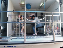 千葉県の地震体験車「まもるくん」は、1度に大人4人(合計280kg)に体験してもらうことができます。 地震体験車では、揺れる前から揺れることがわかっているので、揺れに対する「構え」を取ることができます。 でも、実際の地震の時はどうでしょうか? 地震は突然やってきます。体験車と同じように「構え」を取ることができるでしょうか? せっかくの体験ですから「楽しかった」「怖かった」だけでなく、「本当の地震の時、どうすればいいか」を考えてみて下さいね。