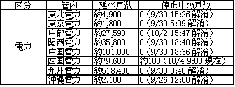 ◆電力の供給停止戸数等(経済産業省調べ:10月5日17時00分現在)